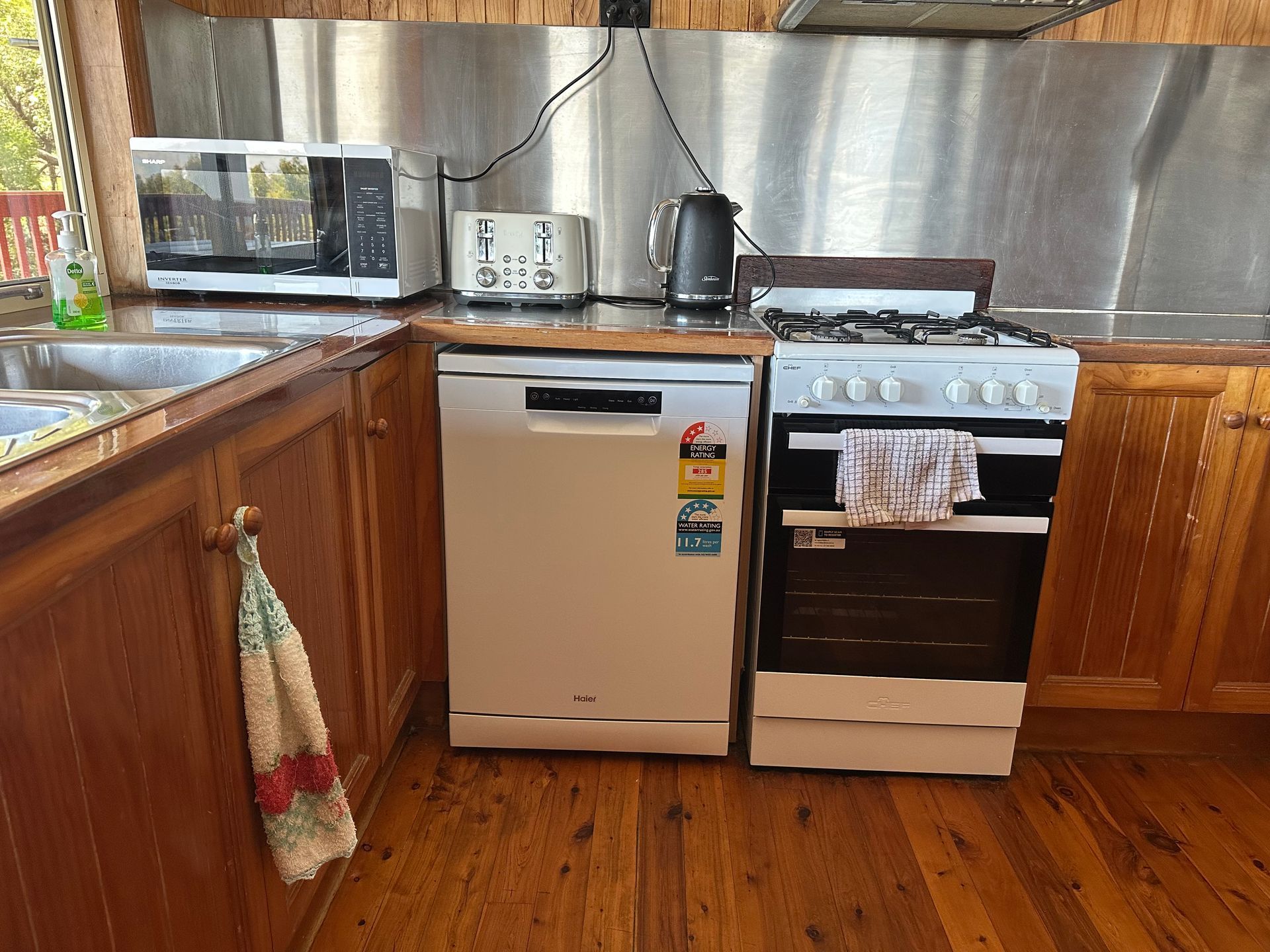 All cutlery, pots, pans, plates, glasses, coffee cups, serving dishes and breadboards are